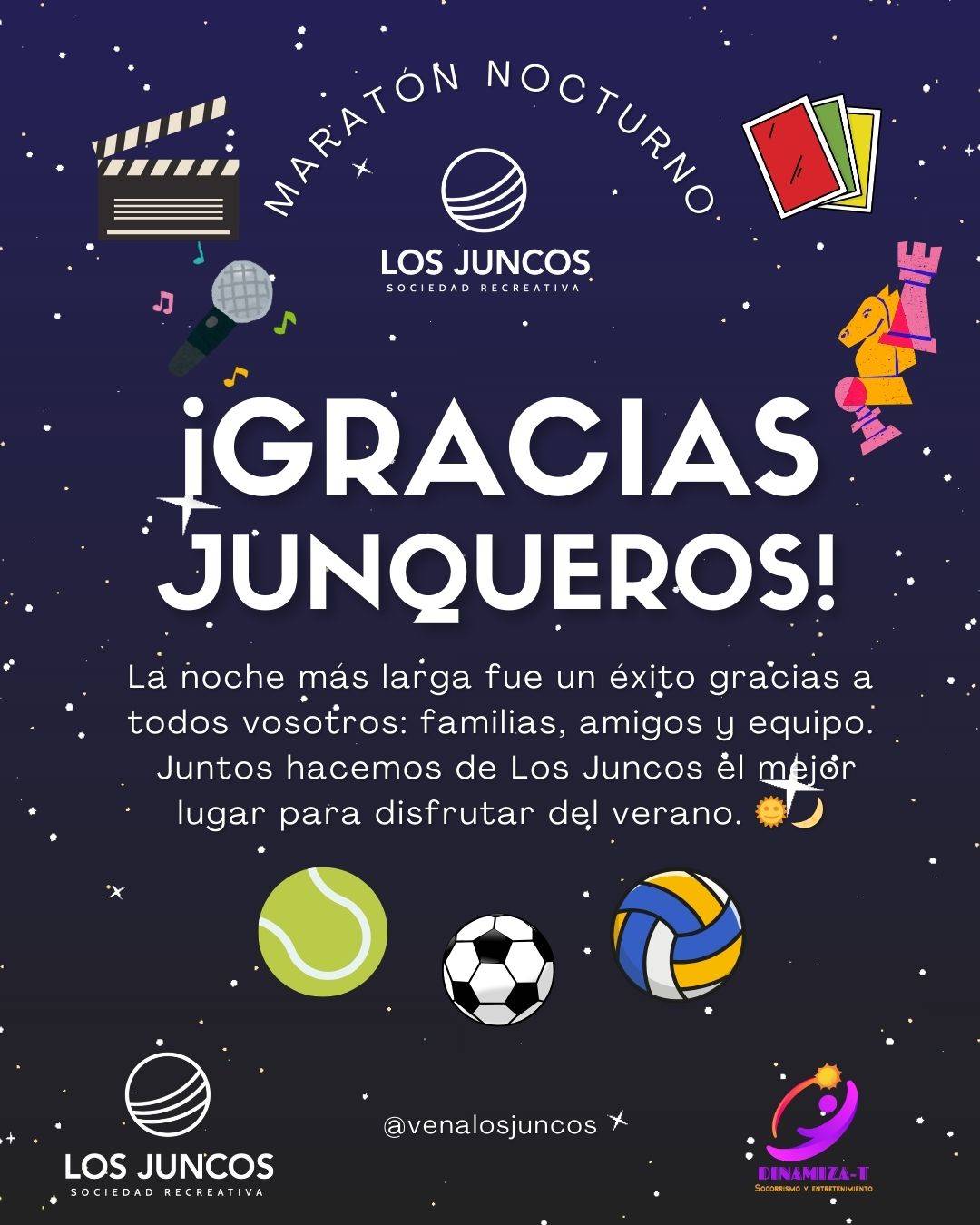 El pasado sábado vivimos la noche más larga en la Sociedad Recreativa Los Juncos, con una auténtica maratón de deporte, convivencia y diversión.